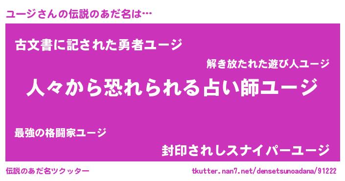 | ポケモン風あだ名 | 『ユックウザ』『ゼニユー』 |