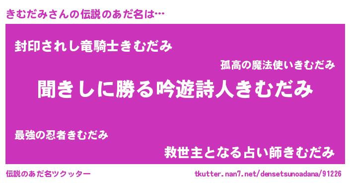 | 意味不明あだ名 | 『住所不定無職きむだみ(9歳)』 |