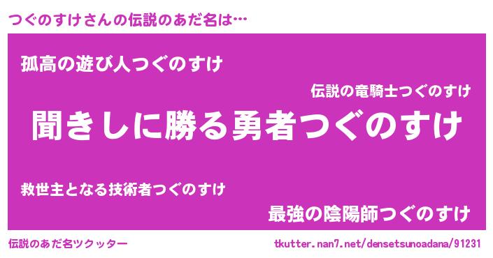 | ヒーロー風カッコイイあだ名 | 『ネオツグノスケ』『暗黒騎士ツグ』 |