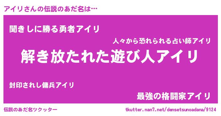 | 意味不明あだ名 | 『住所不定無職アイリ(89歳)』 |