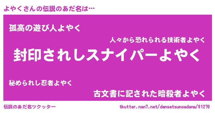| ヘコむあだ名 | 『よやっふぃ~』『よやを』『牛乳』 |
