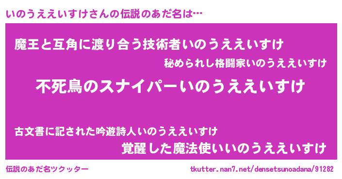 | 男性向けラノベタイトル風あだ名 | 『いのうええいすけに滅ぼされるだけの簡単なお仕事です』 |