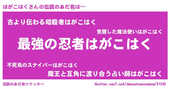 | ヒーロー風カッコイイあだ名 | 『ウルトラはがこはくマン』 |