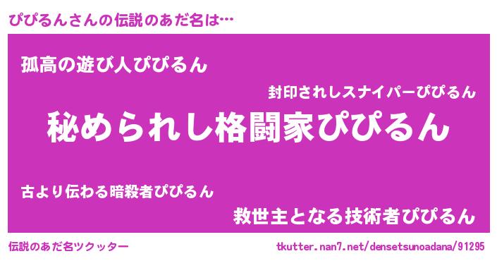 | 意味不明あだ名 | 『めかぶ科ぴぴるん属』『自称ぴぴるん』 |