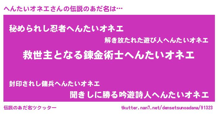 | ヒーロー風カッコイイあだ名 | 『慈愛の使者へんたいオネエ』 |