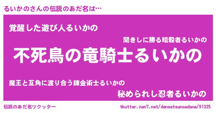 | 胡散臭い通販商品みたいなあだ名 | 『モテモテ間違いなしブレスレット…その名も「るいかの」』 |