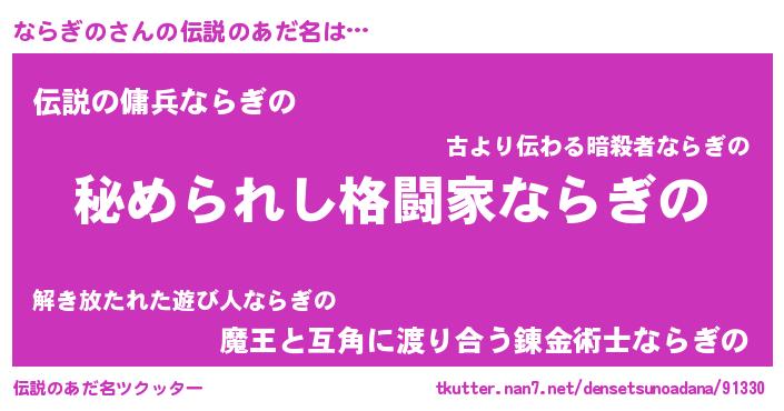 | ファンタジー風あだ名 | 『ゼナラトゥ』『エターナルナラギノー』 |