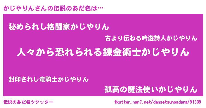 | 男性向けラノベタイトル風あだ名 | 『おまえをオタクにしてやるから、俺をかじやりんにしてくれ! 』 |