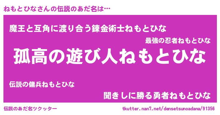 | 女子向けラノベタイトル風あだ名 | 『ねもとひなは平凡を望む』 |