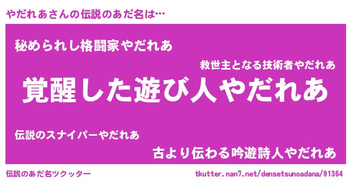 | 意味不明あだ名 | 『とにかく怪しいやだれあ』 |