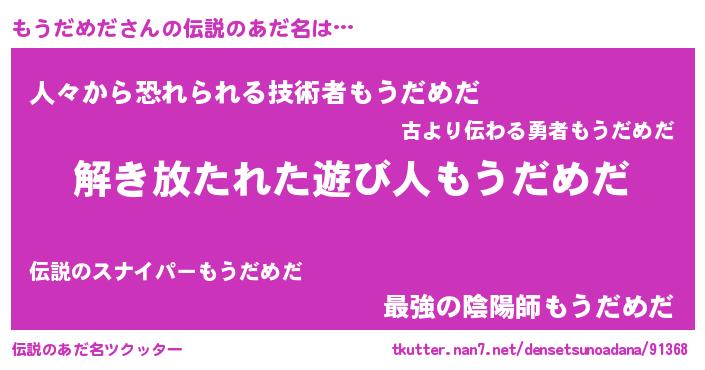 | 意味不明あだ名 | 『とにかく怪しいもうだめだ』 |