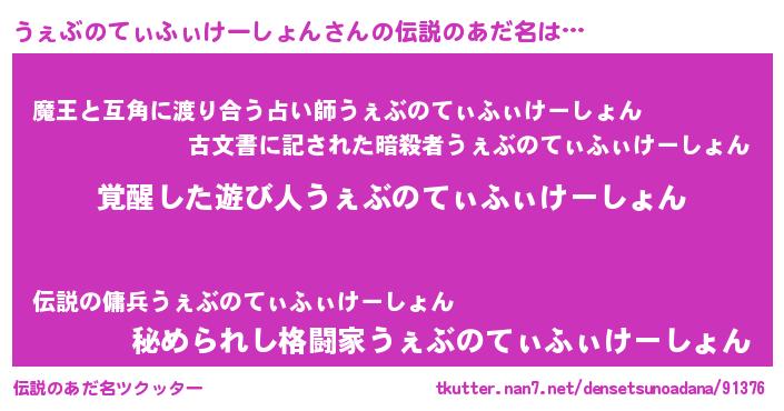 | 意味不明あだ名 | 『とにかく怪しいうぇぶのてぃふぃけーしょん』 |