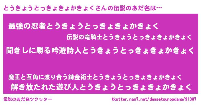 | 意味不明あだ名 | 『自称とうきょうとっきょきょかきょく』 |