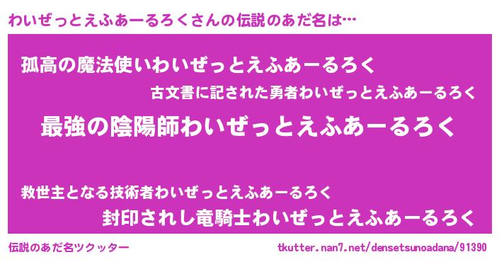 | ファンタジー風あだ名 | 『エターナルワイゼットエフアールロクー』 |