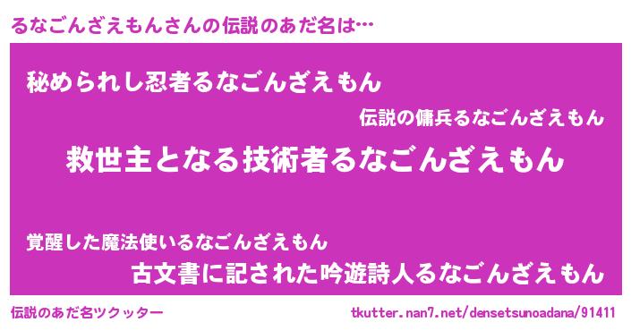 | 女子向けラノベタイトル風あだ名 | 『るなごんざえもんストレイドッグス』 |