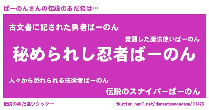 | 意味不明あだ名 | 『自称ばーのん』『ばーのんフォーエバー』 |