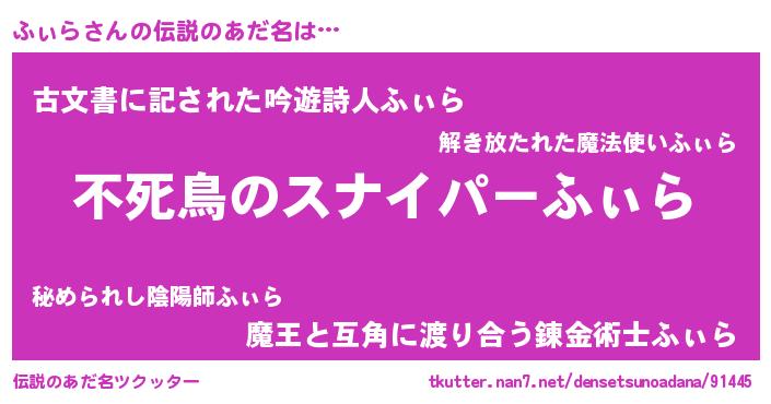| 意味不明あだ名 | 『住所不定無職ふぃら(71歳)』『自称ふぃら』 |