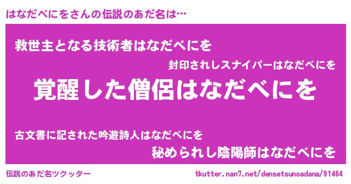 | 意味不明あだ名 | 『自称はなだべにを』 |