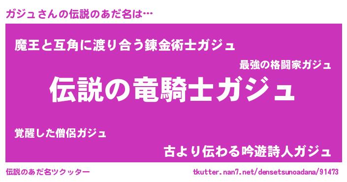 | ヒーロー風カッコイイあだ名 | 『スーパーガジュ』『慈愛の使者ガジュ』 |