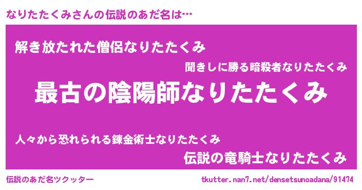 | ファンタジー風あだ名 | 『エターナルナリタタクミー』 |