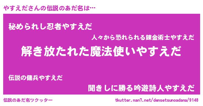 | 女子向けラノベタイトル風あだ名 | 『やすえだの卵を拾いまして』 |