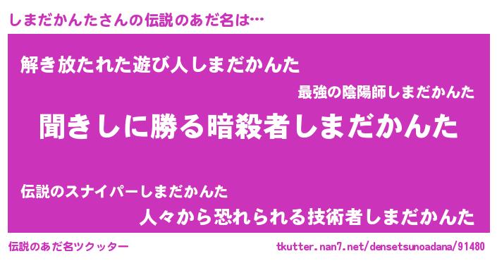 | 意味不明あだ名 | 『住所不定無職しまだかんた(68歳)』 |