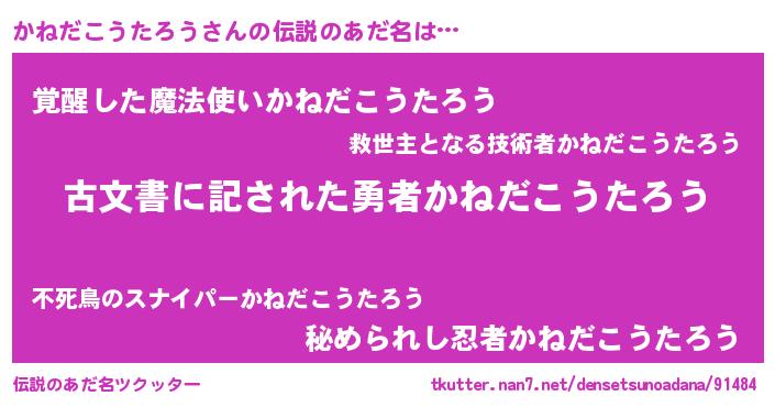 | 男性向けラノベタイトル風あだ名 | 『かねだこうたろう~年齢イコール彼女いない歴の魔法使い~』 |