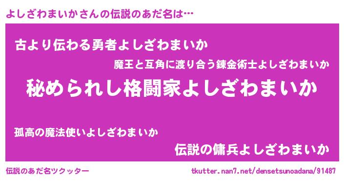 | 意味不明あだ名 | 『住所不定無職よしざわまいか(2歳)』 |