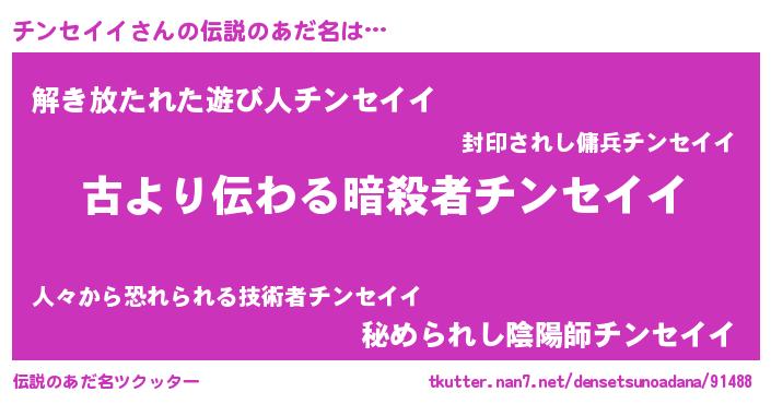 | 欧米人風あだ名 | 『ケンブリッジチンセイイ』 |