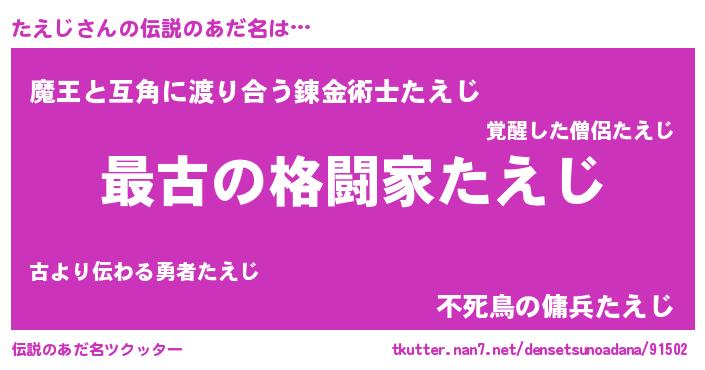| ヒーロー風カッコイイあだ名 | 『ウルトラたえじマン』『愛の使者たえじ』 |