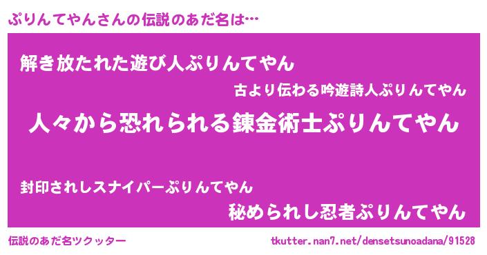 | 男性向けラノベタイトル風あだ名 | 『魔弾の王とぷりんてやん』 |