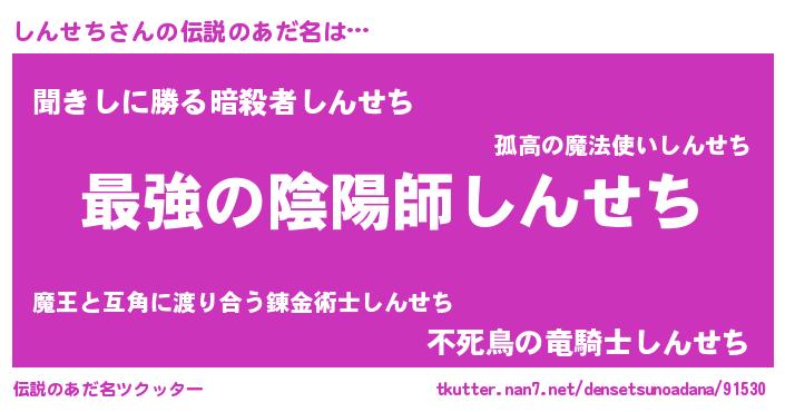 | ヒーロー風カッコイイあだ名 | 『ウルトラしんせちマン』『ネオシンセチ』 |