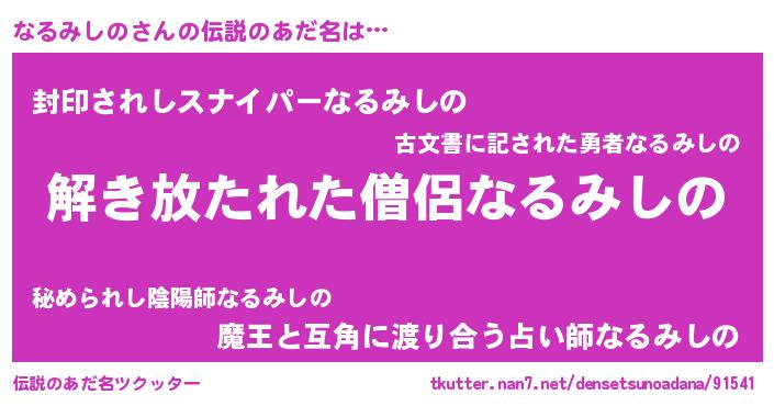 | ヒーロー風カッコイイあだ名 | 『魔戒騎士ナル』『スーパーナルミシノ』 |