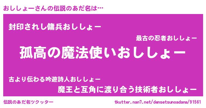 | ヒーロー風カッコイイあだ名 | 『超時空戦士オシショー』『天弓騎士オシ』 |