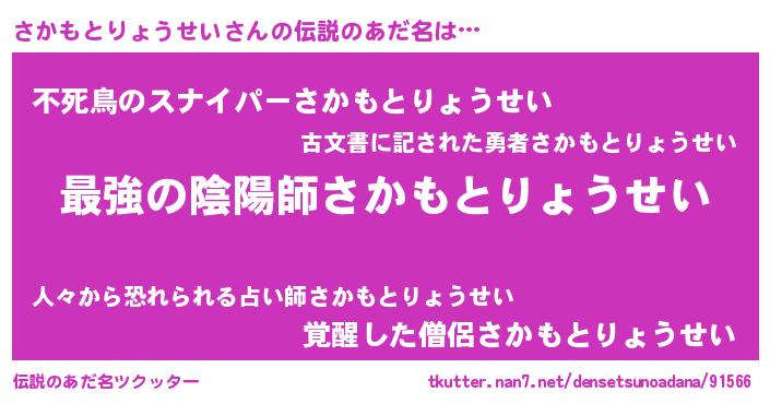 | 男性向けラノベタイトル風あだ名 | 『さかもとりょうせいに滅ぼされるだけの簡単なお仕事です』 |