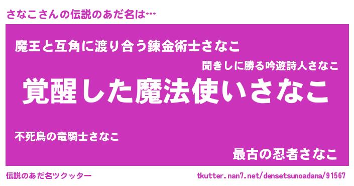 | 女子向けラノベタイトル風あだ名 | 『さなこ様がみてる』『さなこ恋絵巻』 |