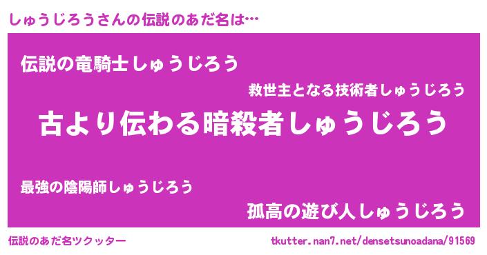| 男性向けラノベタイトル風あだ名 | 『しゅうじろうという概念が存在しない退屈な世界 』 |