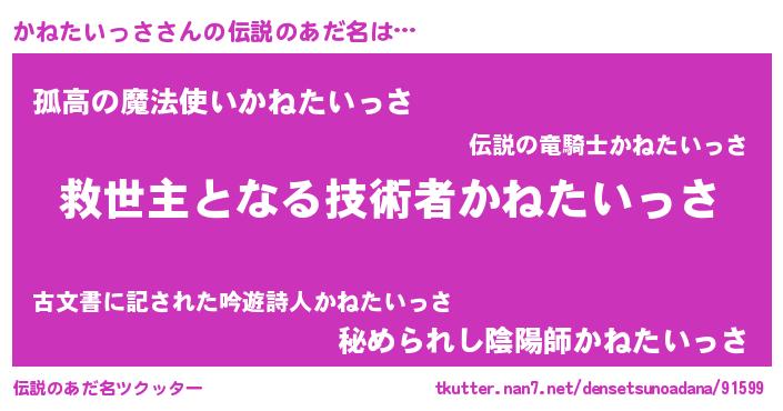| ヒーロー風カッコイイあだ名 | 『慈愛の使者かねたいっさ』 |