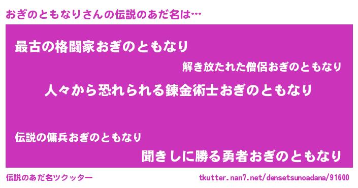 | ヒーロー風カッコイイあだ名 | 『正義の使者おぎのともなり』 |