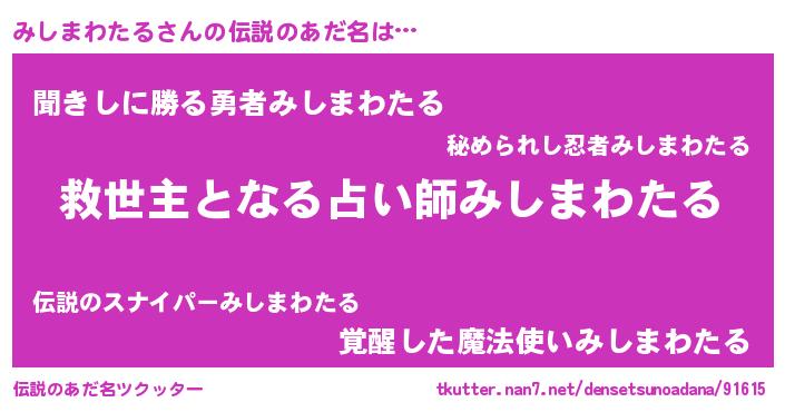 | ヒーロー風カッコイイあだ名 | 『天空の使者みしまわたる』 |