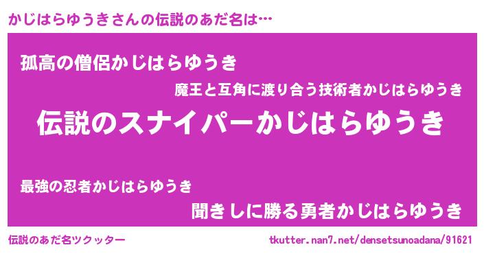 | 胡散臭い通販商品みたいなあだ名 | 『必ず成功する霊験あらたかなお札…その名も「かじはらゆうき」』 |