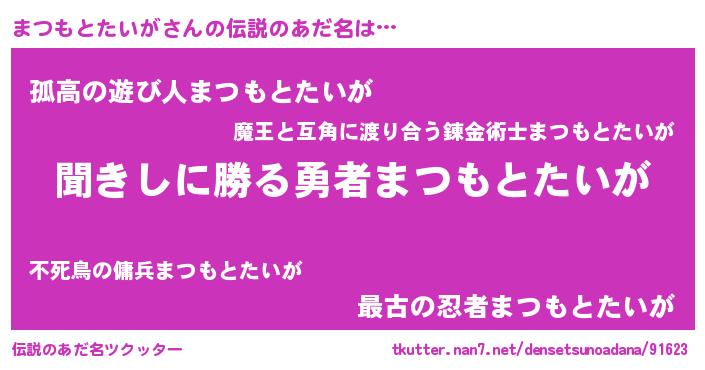 | ヒーロー風カッコイイあだ名 | 『ネオマツモトタイガ』『天弓騎士マツ』 |