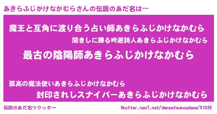 | ヒーロー風カッコイイあだ名 | 『ウルトラ戦士アキラフジカケナカムラ』 |