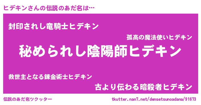 | 男性向けラノベタイトル風あだ名 | 『やはりヒデキンの青春ラブコメはまちがっている 』 |