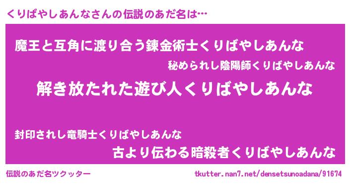 | 意味不明あだ名 | 『とにかく怪しいくりばやしあんな』 |