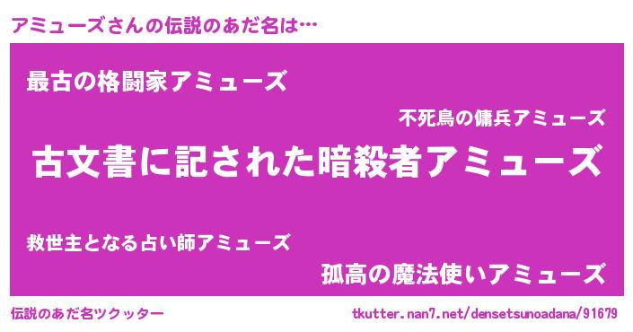 | ヒーロー風カッコイイあだ名 | 『ネオアミューズ』『暗黒騎士アミ』 |