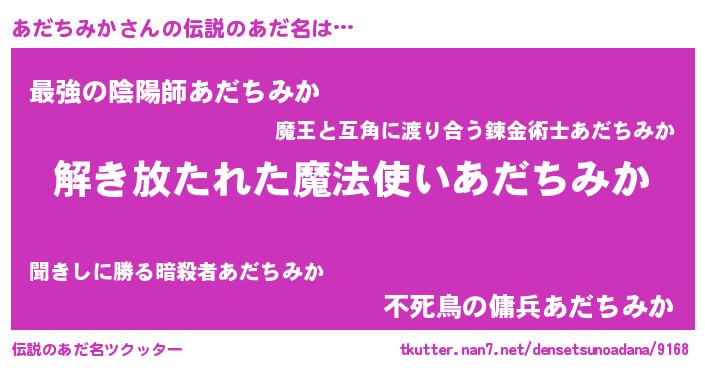 | 意味不明あだ名 | 『とにかく怪しいあだちみか』 |