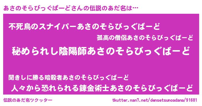 | ファンタジー風あだ名 | 『エターナルアサノソラビッグバードー』 |