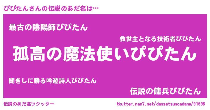 | ヒーロー風カッコイイあだ名 | 『超時空戦士ピピタン』『幻影騎士ピピ』 |