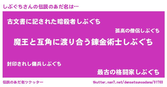 | 男性向けラノベタイトル風あだ名 | 『おまえをオタクにしてやるから、俺をしぶぐちにしてくれ! 』 |